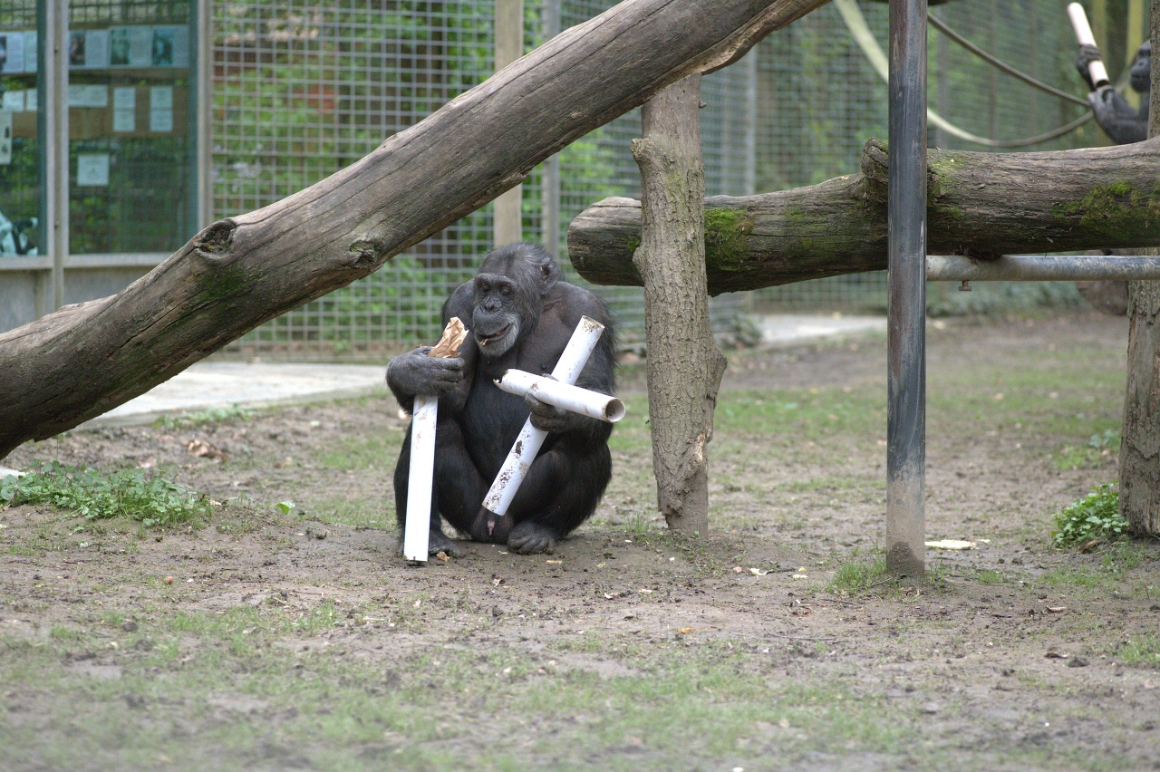 15:00 Uhr erhalten die Schimpansen ihre Bonbons.